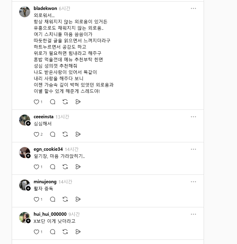 SNS인데 일기장처럼 쓰는 사람들이 많잖아