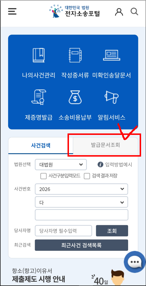 사건번호를 알고 있으면 조회가 훨씬 빠릅니다.